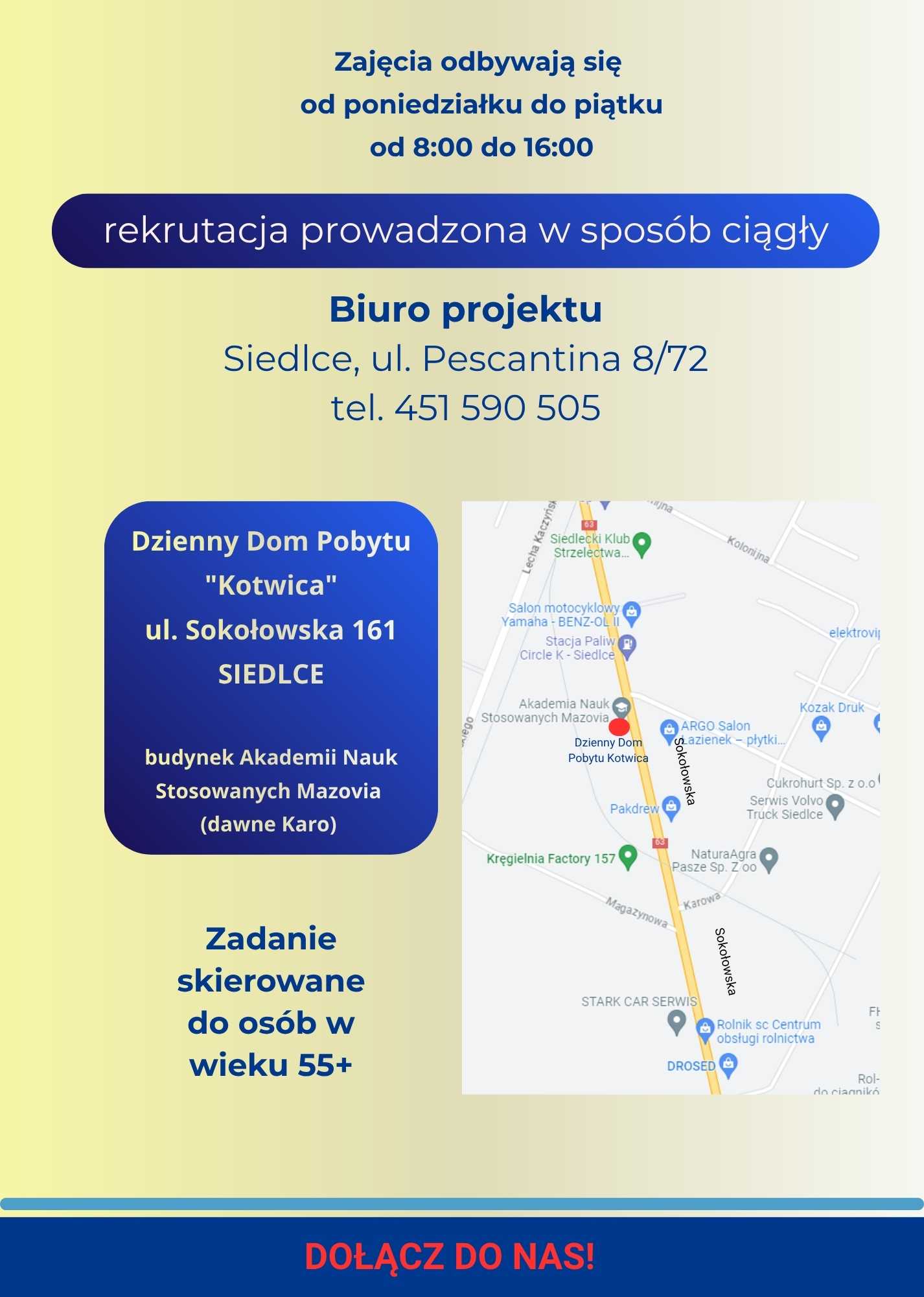 Dom jest prowadzony na terenie miasta Siedlce, ul. Sokołowska 161, 08-110 Siedlce,
