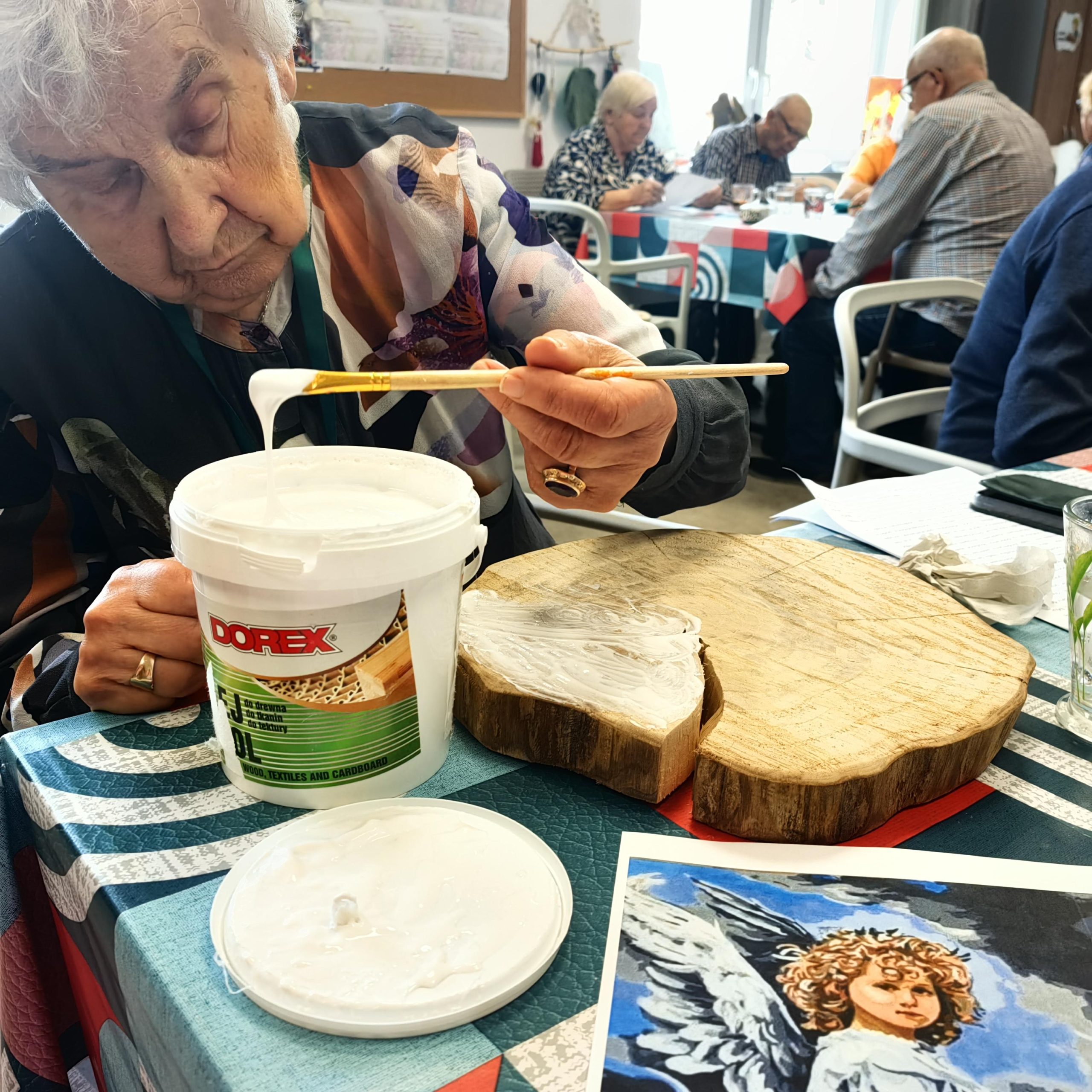 Ta forma terapii zajęciowej jest niezwykle precyzyjna, ale daje spektakularne efekty! Uczestnicy z ogromną uwagą i skupieniem przenosili klasyczne obrazy na naturalne deski. Efekt? Przepiękne, unikalne dekoracje z efektem „starej deski”, które zachwycają głębią i artystycznym charakterem. 😇
