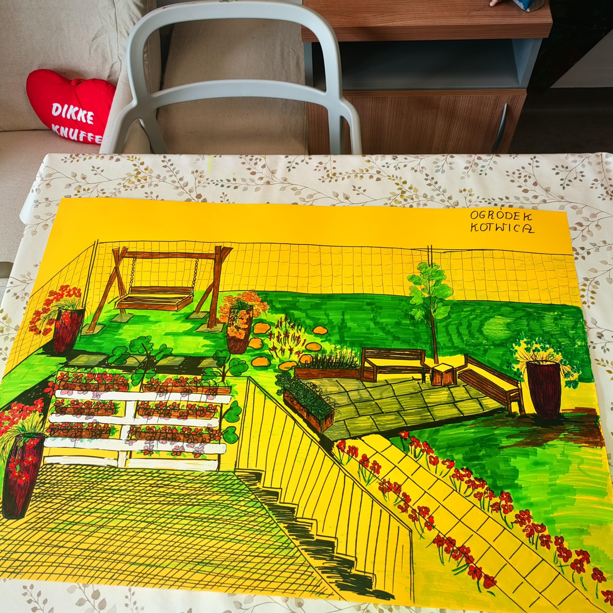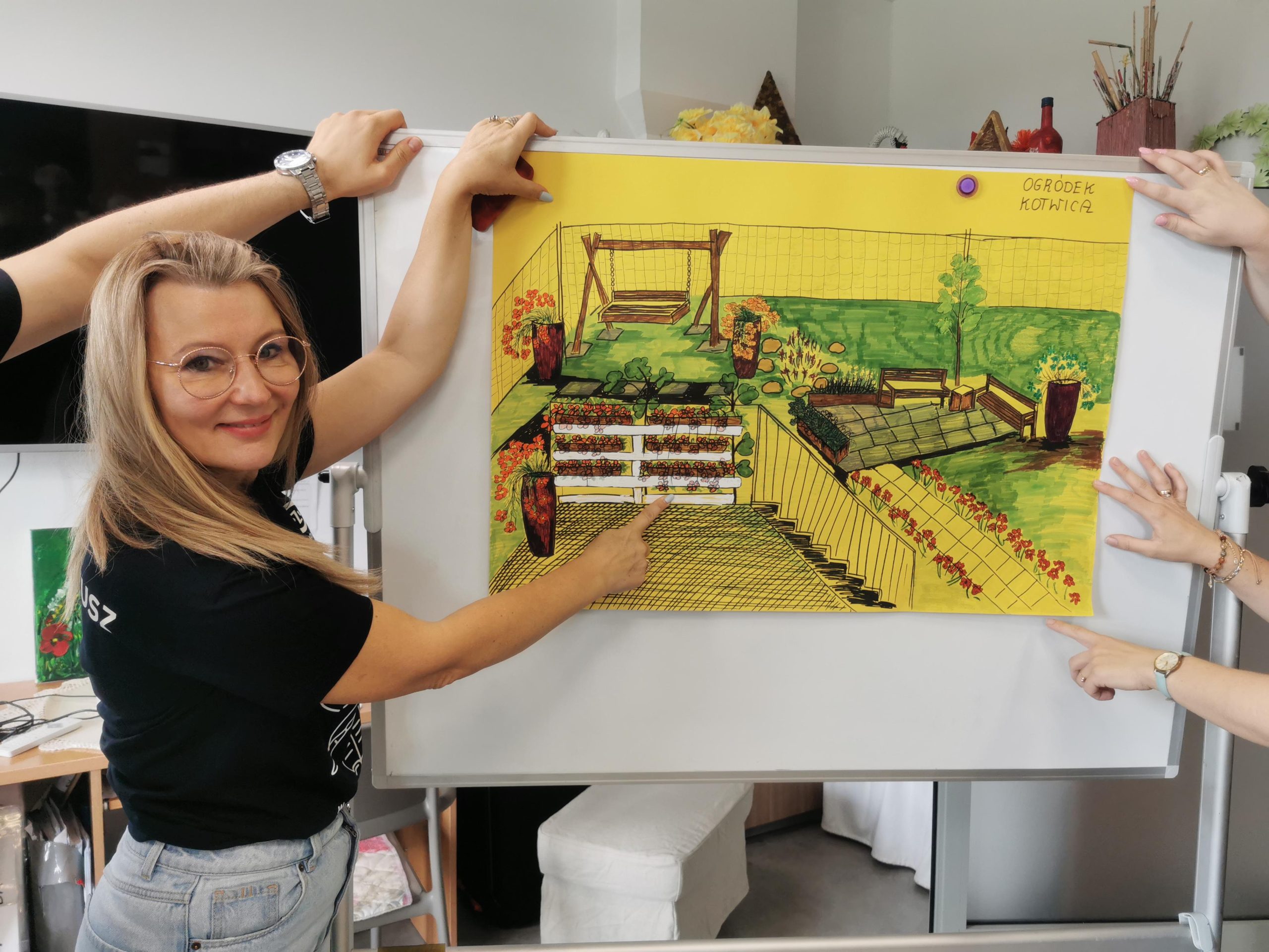 Uczestnicy podczas zajęć w Kotwicy wspólnie z terapeutami zaprojektowali swój „Wymarzony ogród marzeń”, który następnie został zaprezentowany wolontariuszom PZU. Następnie zostały zakupione nasadzenia oraz urzeczywistniono projekt z rysunku podczas wspólnych zajęć.